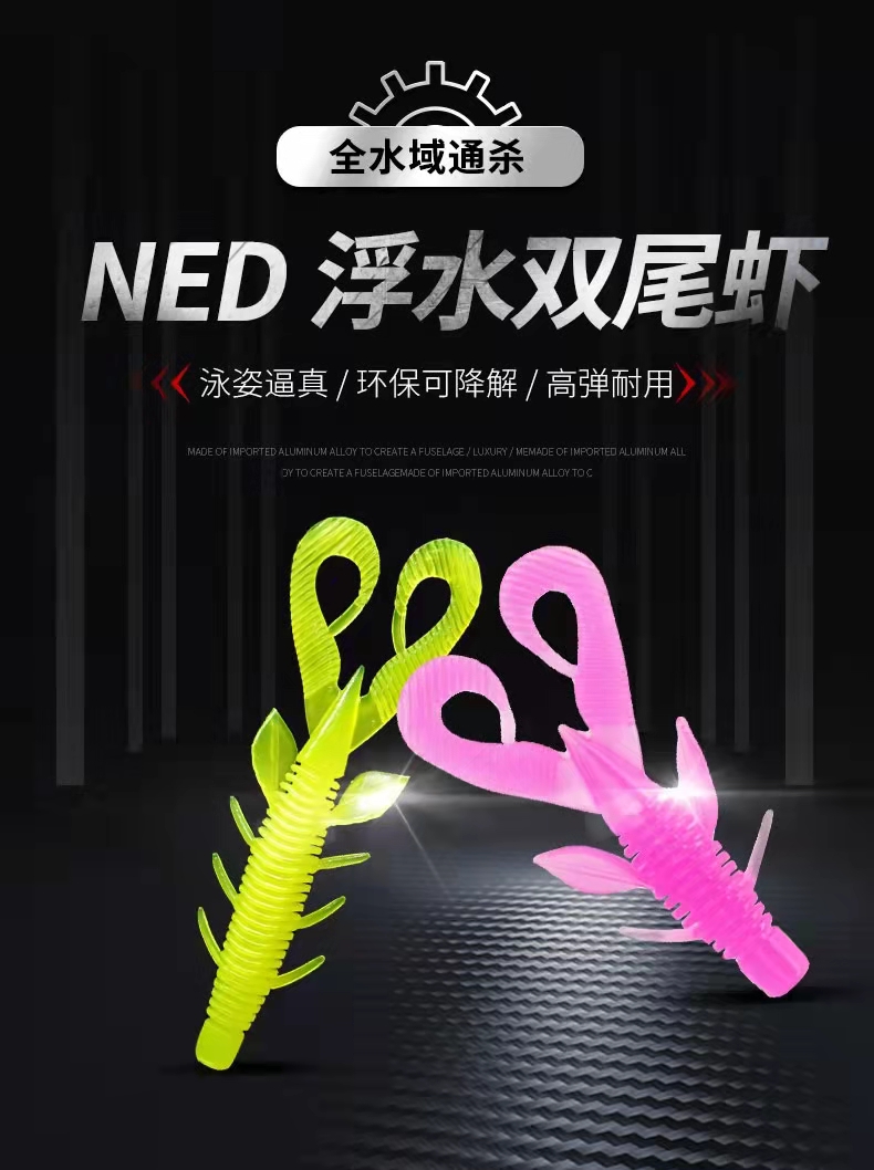 Dongding floating double tail shrimp 2 6 inch lua soft bug black bass black fish poured shrimp