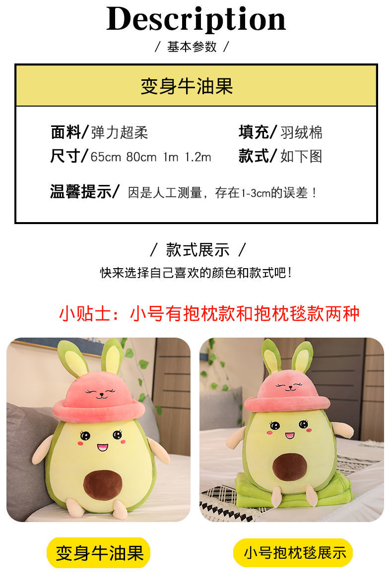 Avocado Long Term Soft Throw Pillow-With Flannel Soft Blanket Avocado Long Term Soft Throw Pillow-No Blanket