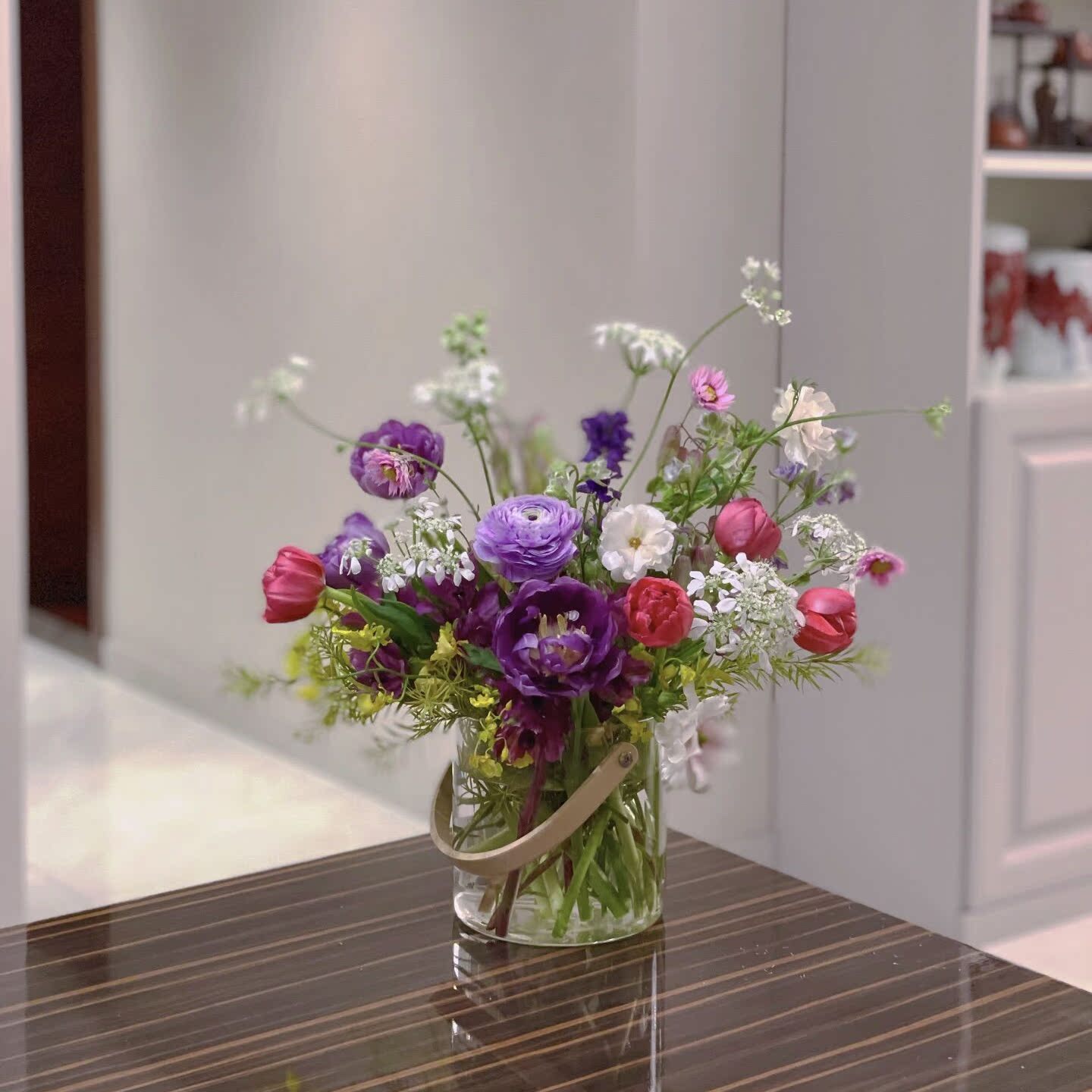 Solid wooden hand reminds flower glass flower vase high-sensation living room in Wind Net red fruit tea bucket