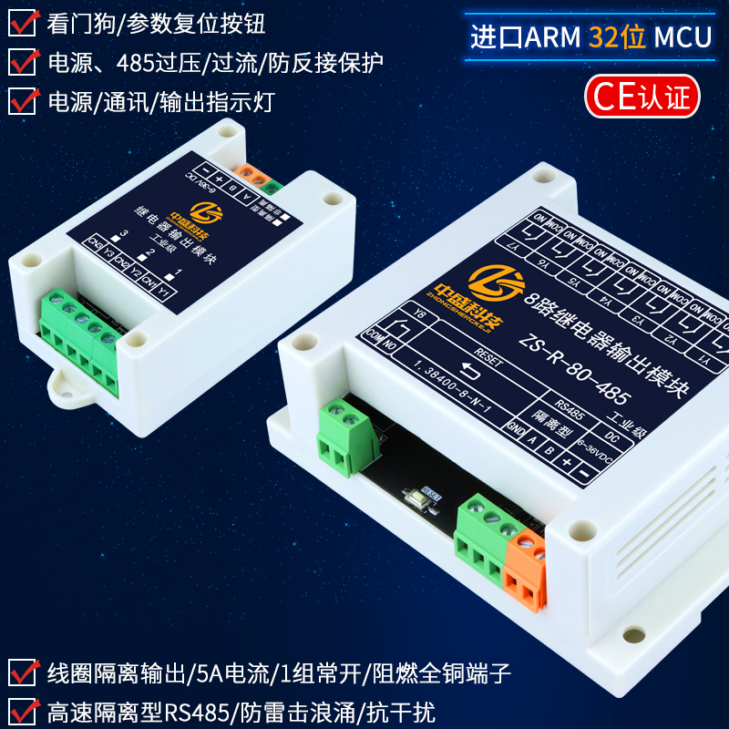 5A relay output module 485 communication IO expansion board electromagnetic relay industrial grade Modbus Zhongsheng