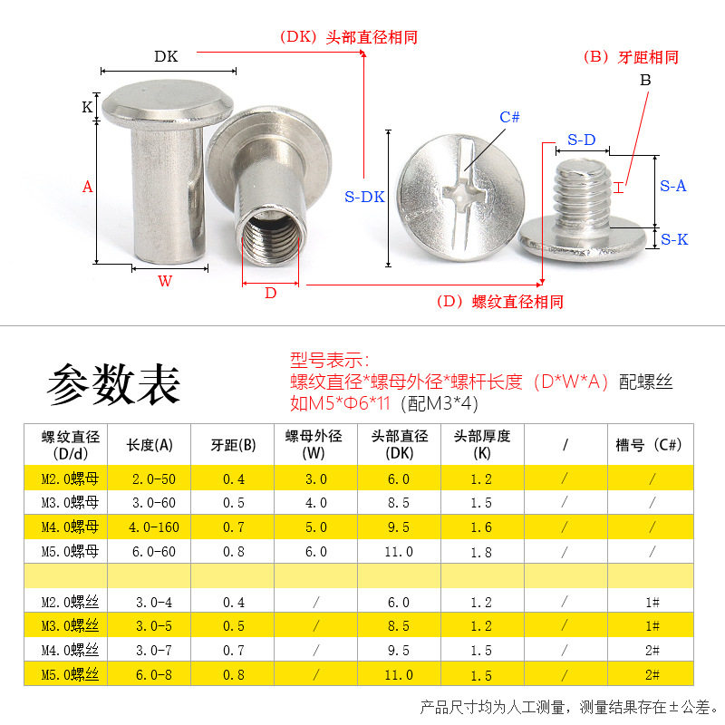 304 stainless steel butt self-lock primary-secondary rivet M2-M5 flat-head hypotenuse nut with eleven-word slot screw