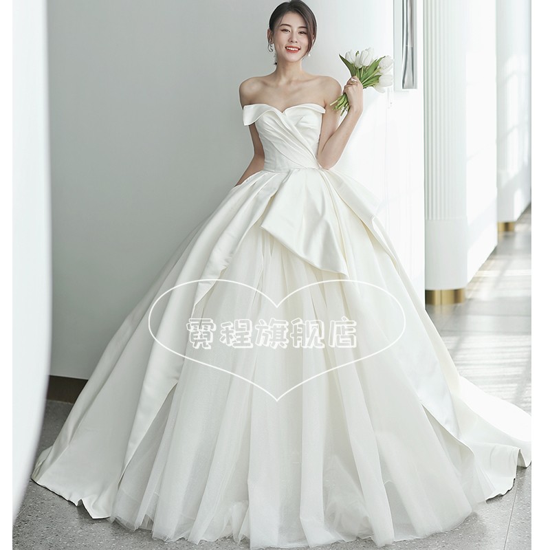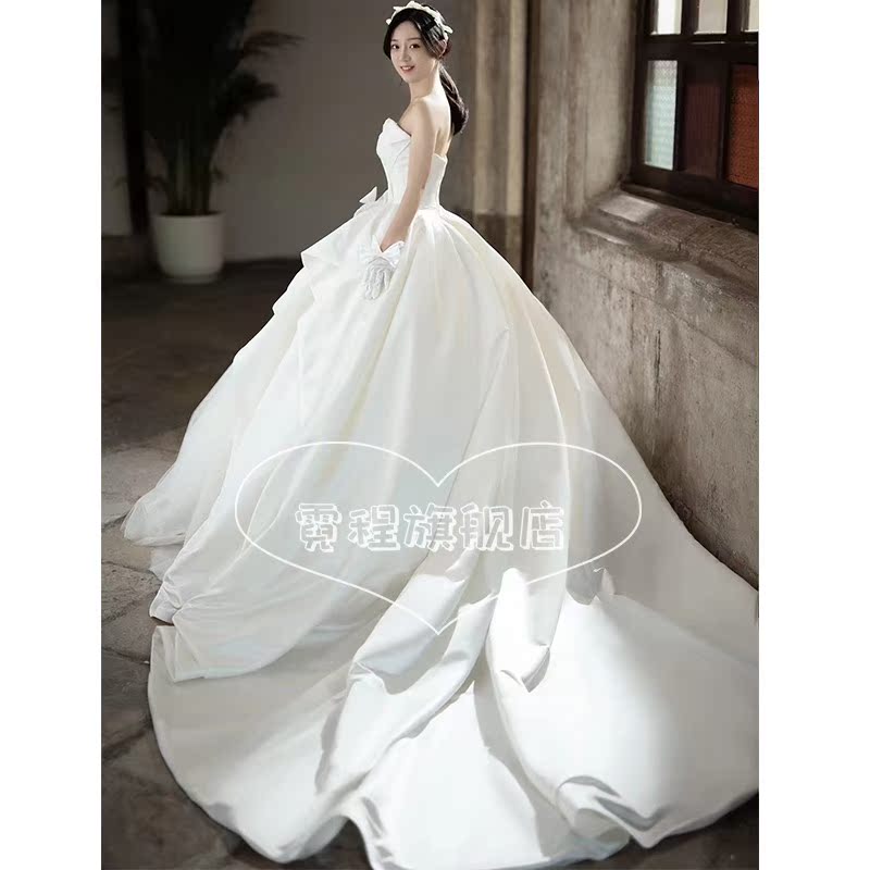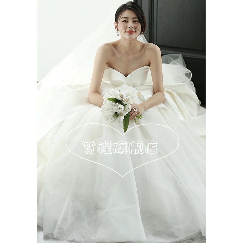 Satin main wedding dress 202221 new bride trailing French light go out gauze retro small girl tube top - Taobao