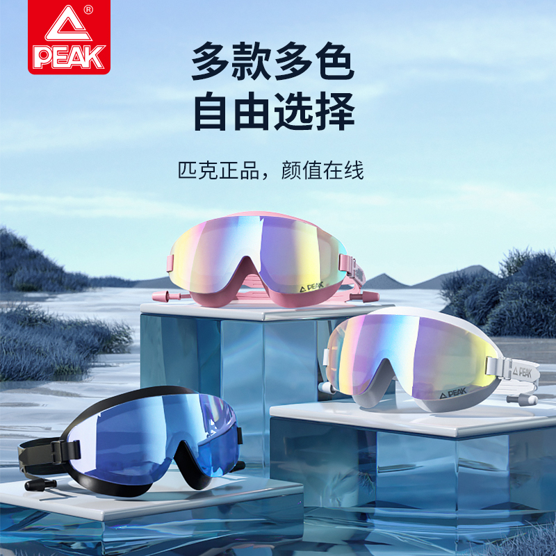 Peak large frame swimming goggles female diving goggles waterproof anti-fog HD professional myopia swimming goggles coated swimming glasses