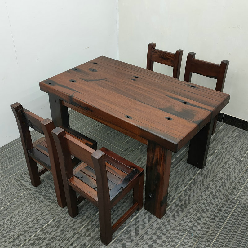 Old ship wooden dining table and chair combination hotel restaurant all solid wood dining table restaurant simple multi-person furniture living room dining table