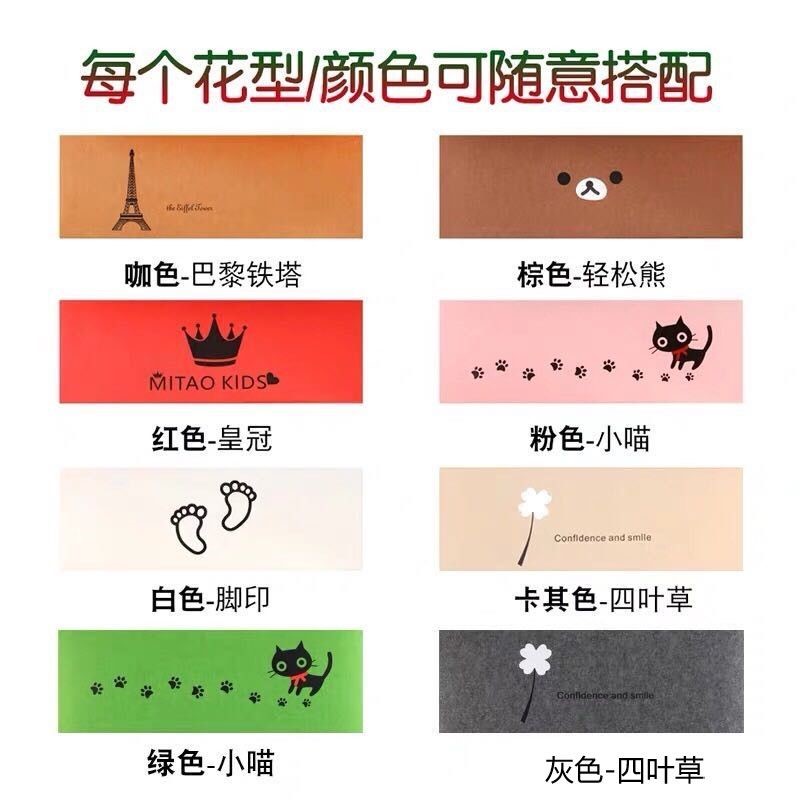 White (feet girl) red (crown) pink (kitten) brown (kitten) green (small cat) curry (Paris Tower) grey (four leafy grass) Carits (four leaf grass) felt pattern floral type Ren