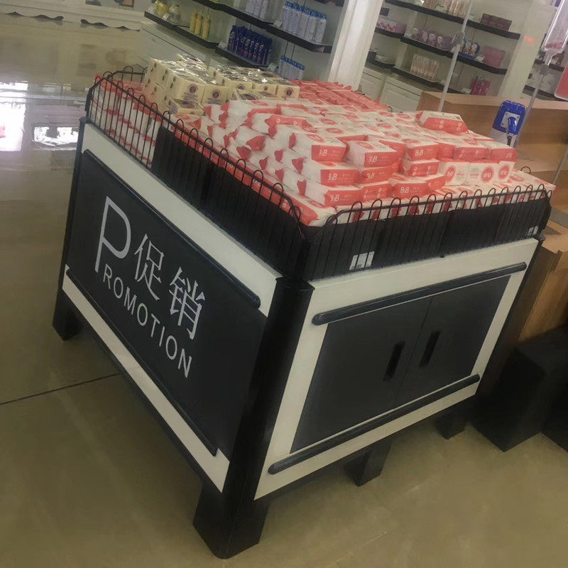 Supermarket promotion table luxury disassembly shelf car promotion car anti-collision dump goods display table wood grain special table float
