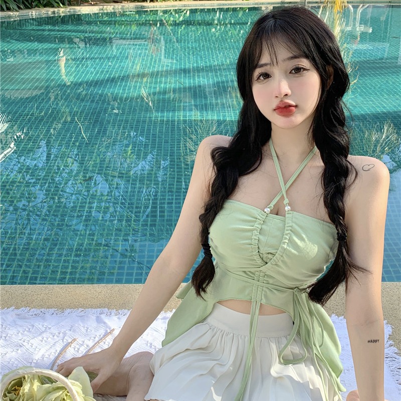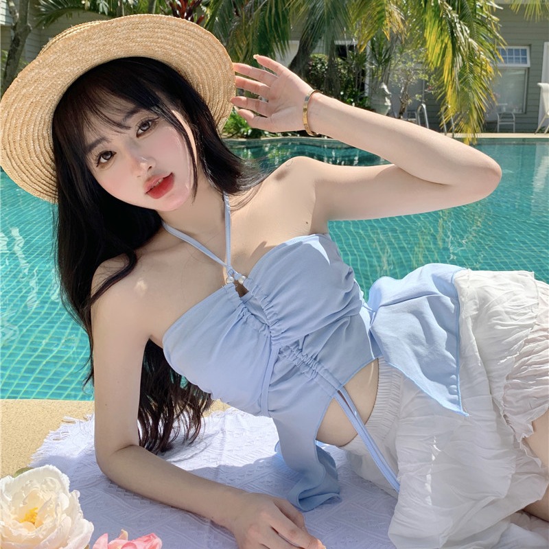 Atmosphere Sensation Pure Desire Hot Girl Sexy Cross Hanging Neck Harness Vest Woman Hollowed-out Irregular Design Sensation don't make a blouse