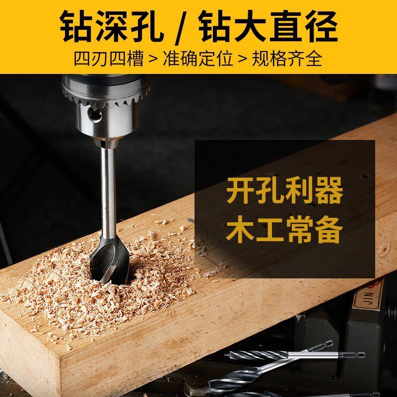 Woodworking branch drill hexagonal handle four-slot four-edged woodworking reaming drill hole opener extended hand electric drill twist drill