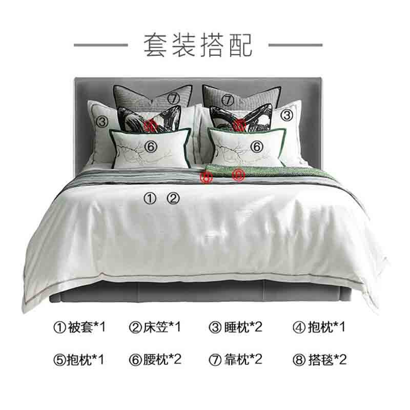 New Chinese black gray green high-end exhibition room bedding luxury soft soft-suit sample room