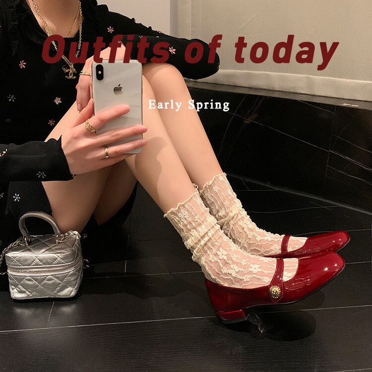 Face value explosive table ~ small crowdlaw retro coarse heel Mary Jane shoes lacquered leather red with coarse heel single shoe woman