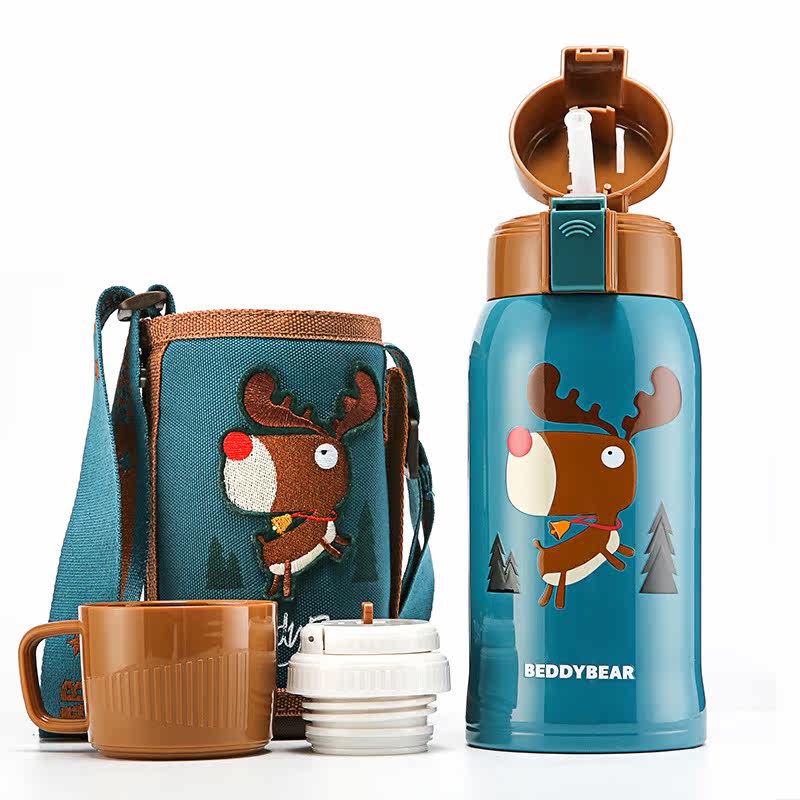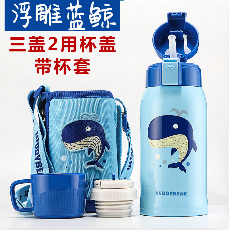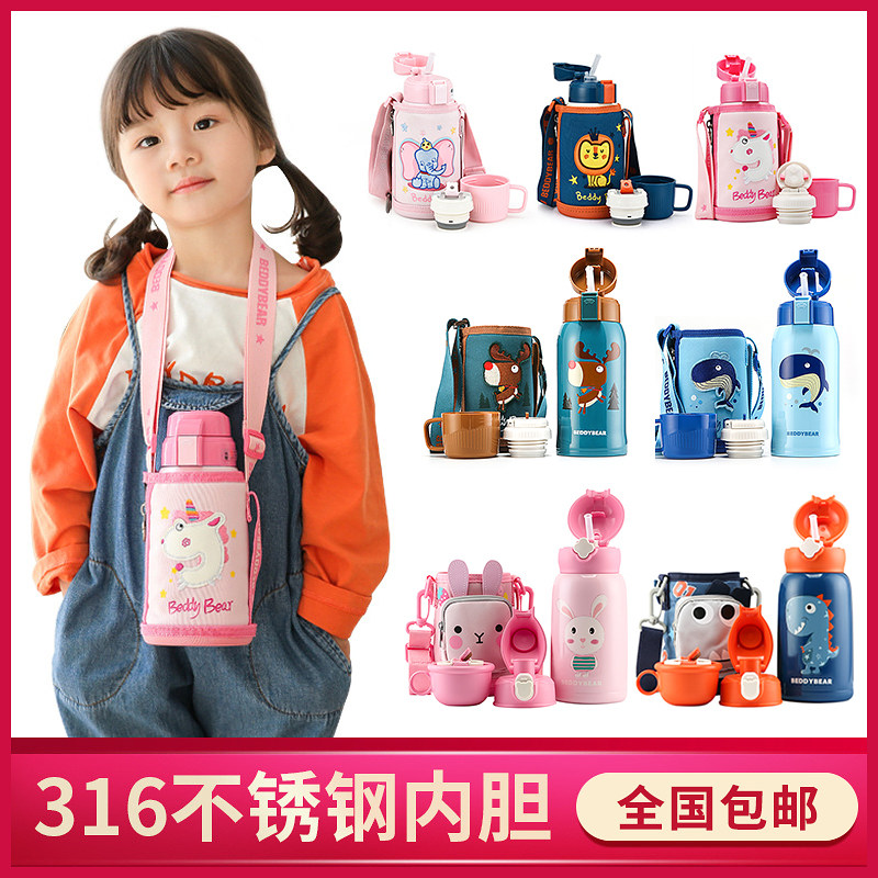 Cup with bear children's insulated cup with straw 316 stainless steel food grade male and female students kindergarten kettle water glass