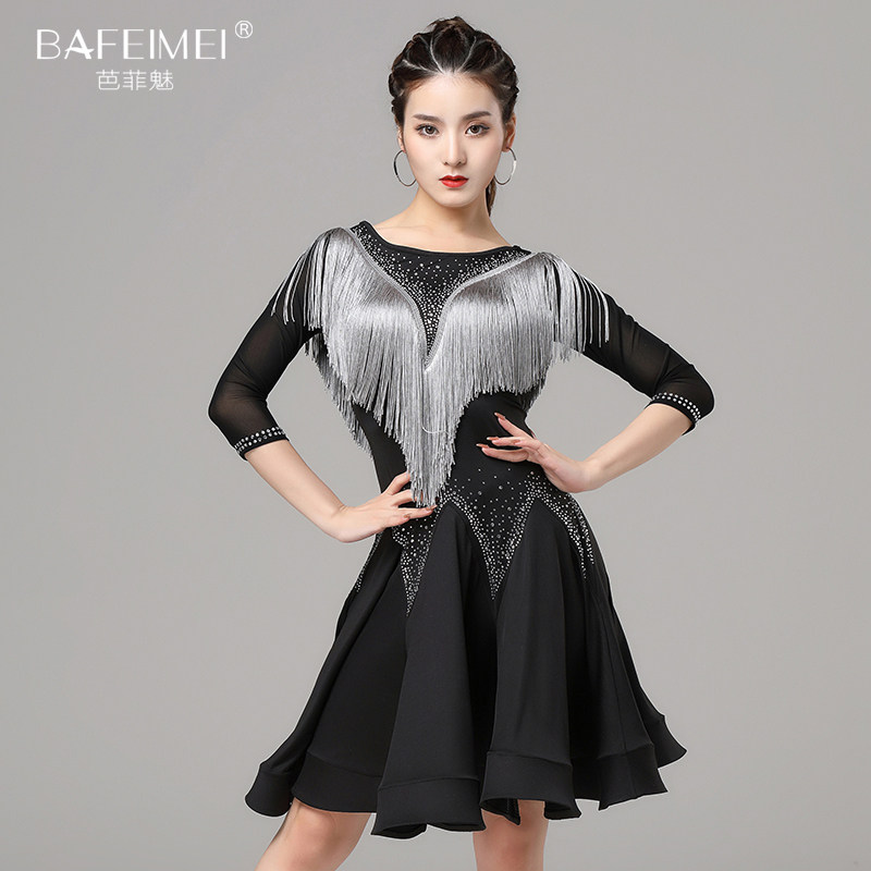 2022 new Latin performance dress Women professional competition Dance Ocean Costume Adults Group Performance Sexy Flutresses