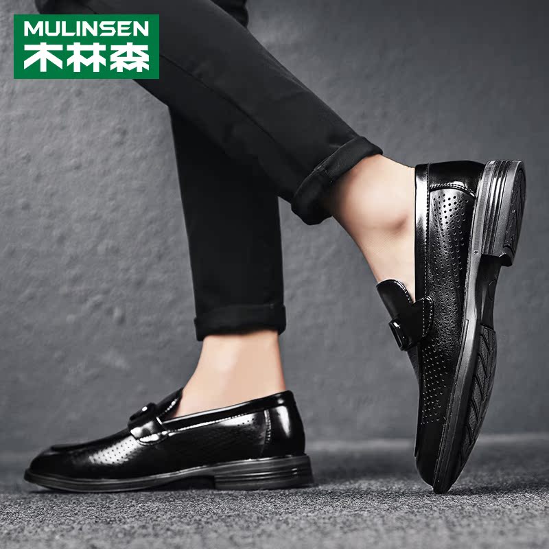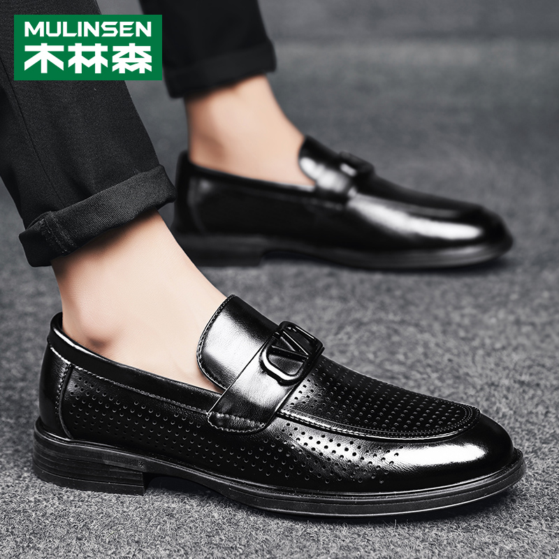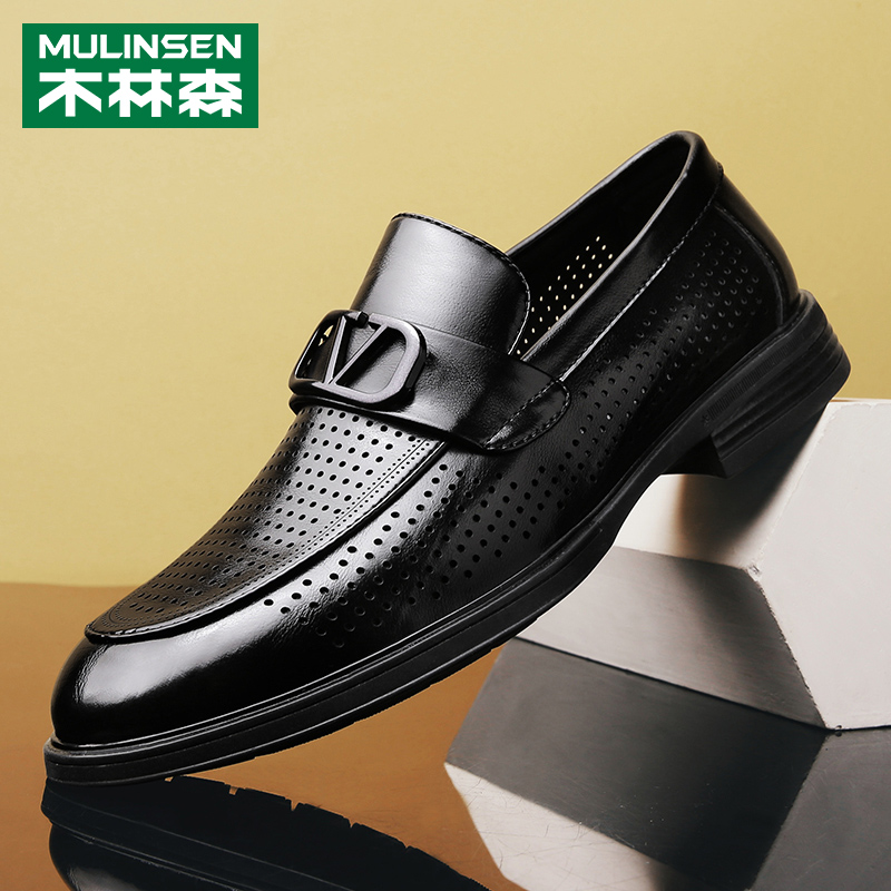 Mulinsen summer breathable thin casual men's shoes a pedal middle-aged dad shoes business formal dress hollow leather shoes men