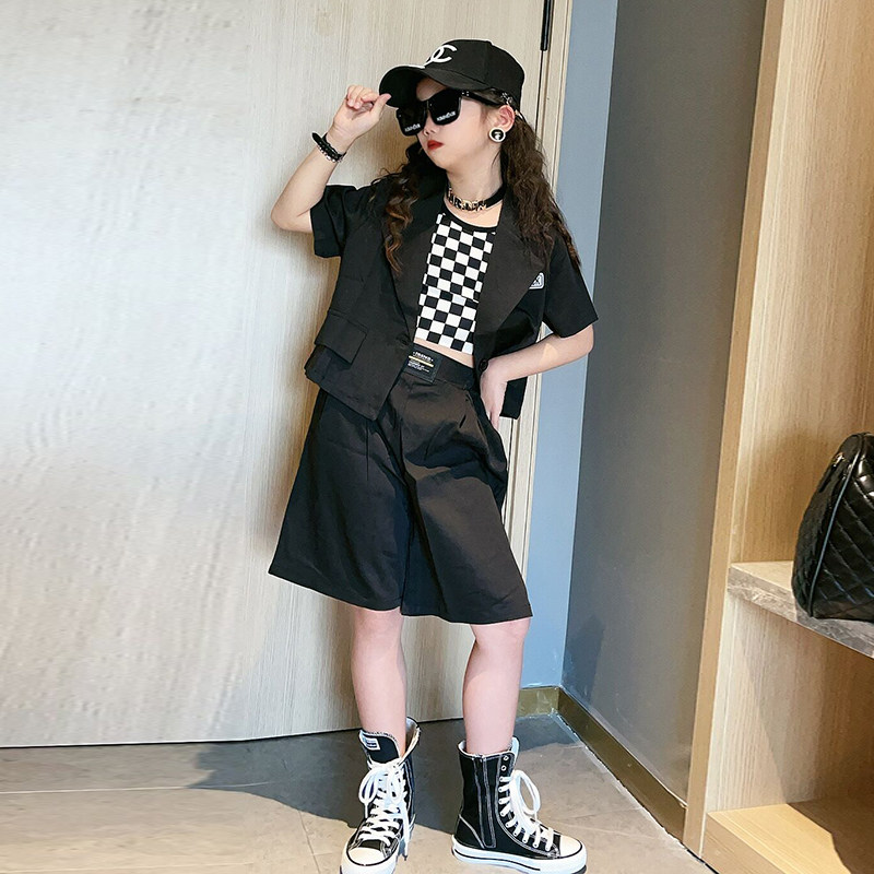 Girl Bully Suit Suit 2022 Summer with CUHK Boy Fried Street Short Sleeves Shorts Walk Show Inglén Wind Three Sets of Tides
