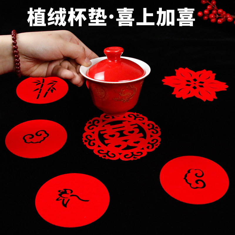 Wedding coaster tea cup insulation pad hi word absorbent anti-scalding pad flocking surface water coaster wedding supplies decorative placemat