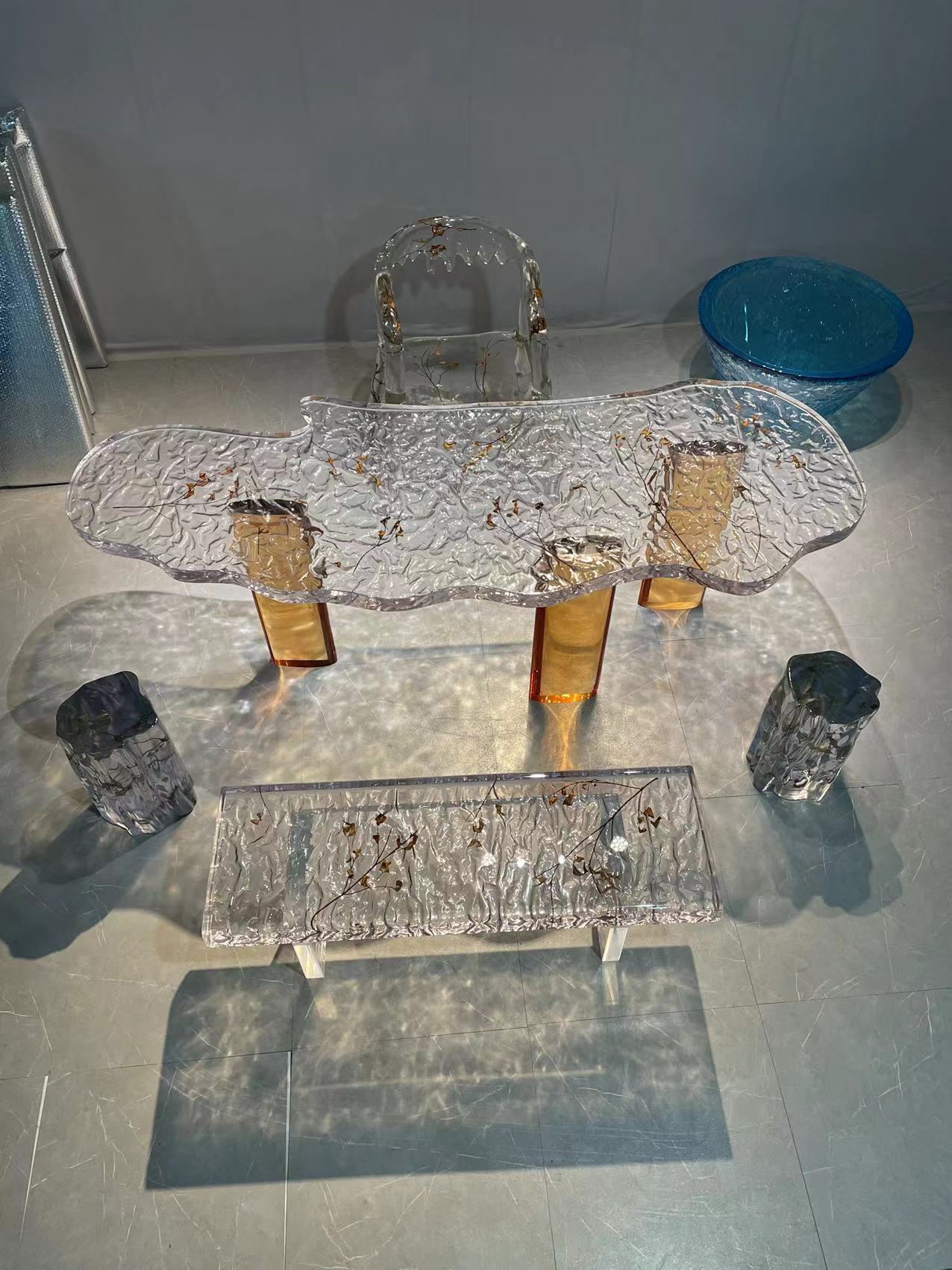 107 New Net Red Tea Table Transparent Epoxy Resin Crystal Water Drop Art Tea Table Transparent Branch Leaf Table