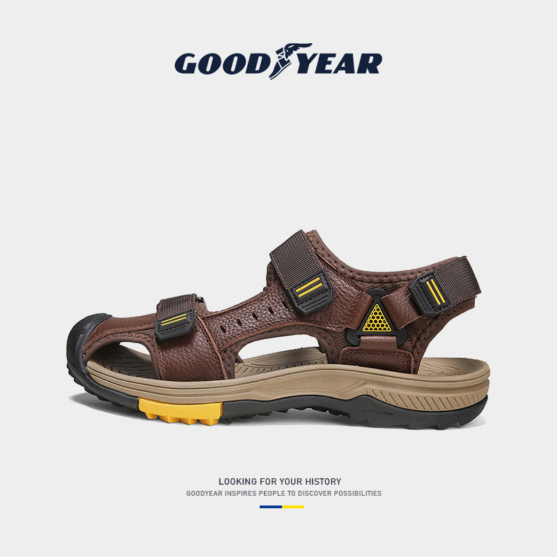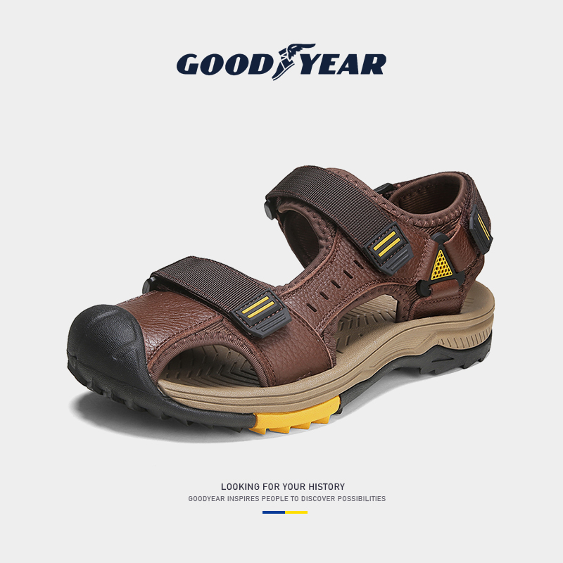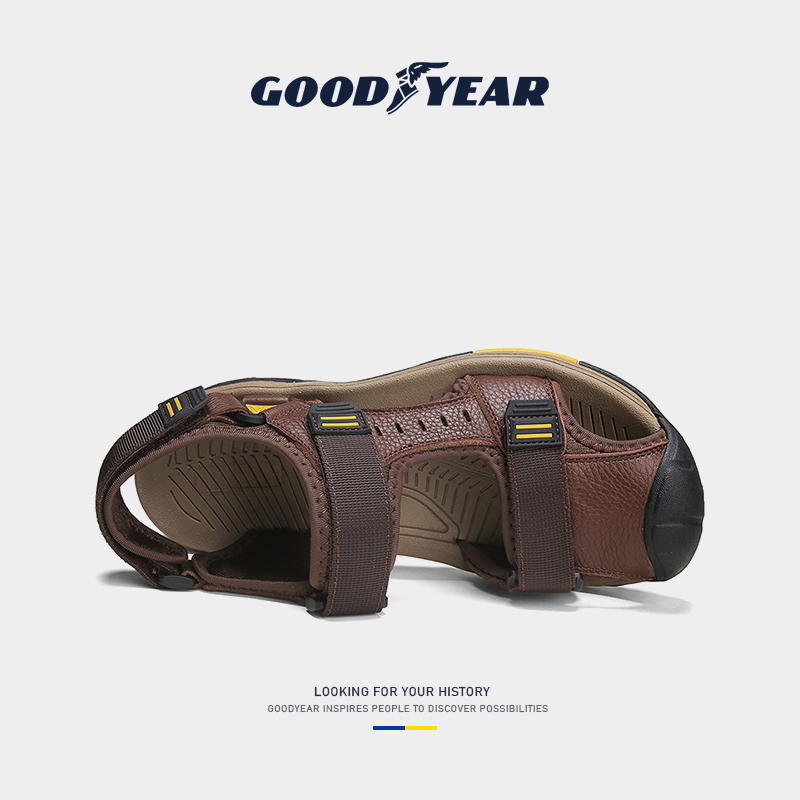 Goodyear Genuine Leather Sandals Summer New Outdoor Non-slip Casual Beach Shoes Men Trends Dual-use Sandals Men