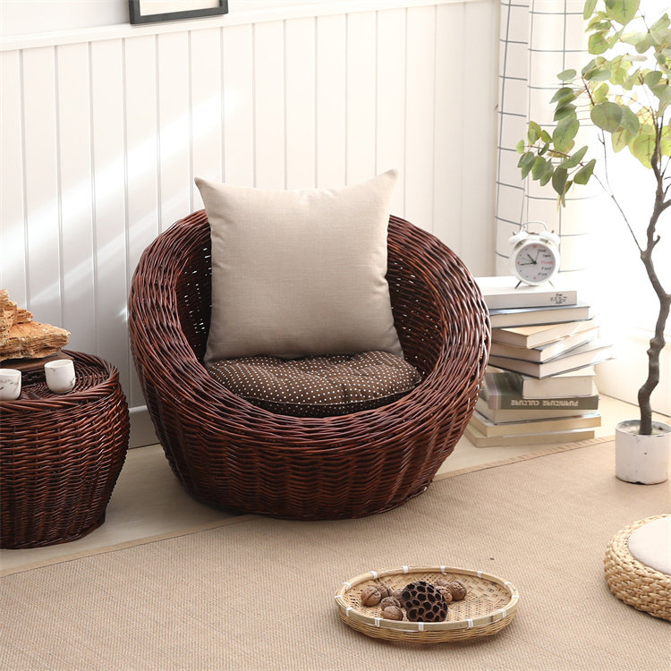 Rusi pure natural wicker sofa hand-woven balcony single living room lazy drinking tea chair combination bedroom outdoor