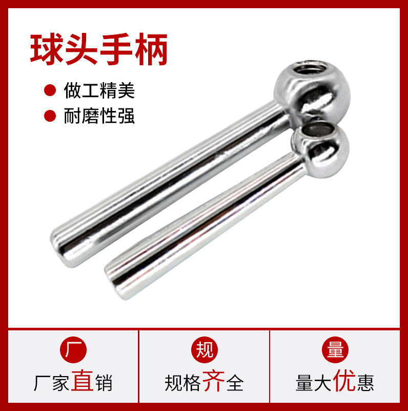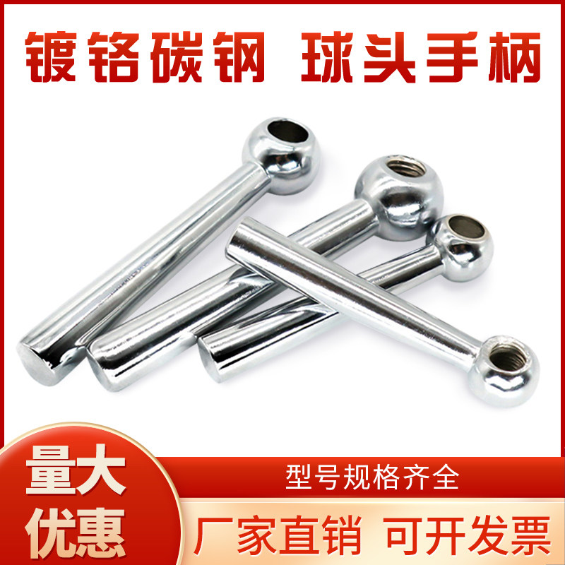 Cone column handle iron chrome-plated ball head handle spherical inclined head iron handwheel machine tool handwheel handle internal thread light hole