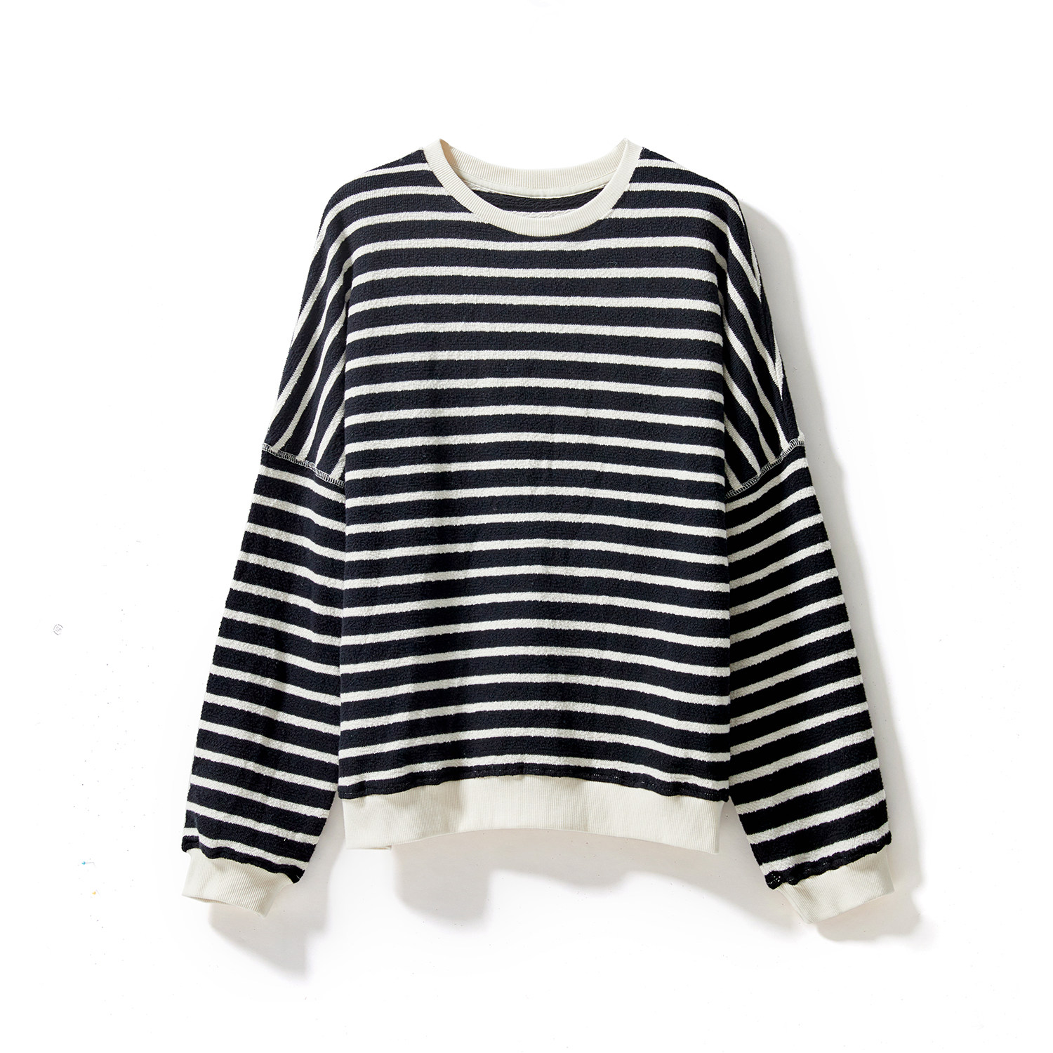 Jung Mei (WT0321461) Spring-autumn-style collision color striped high-quality all-cotton classic long sleeve thick cotton T