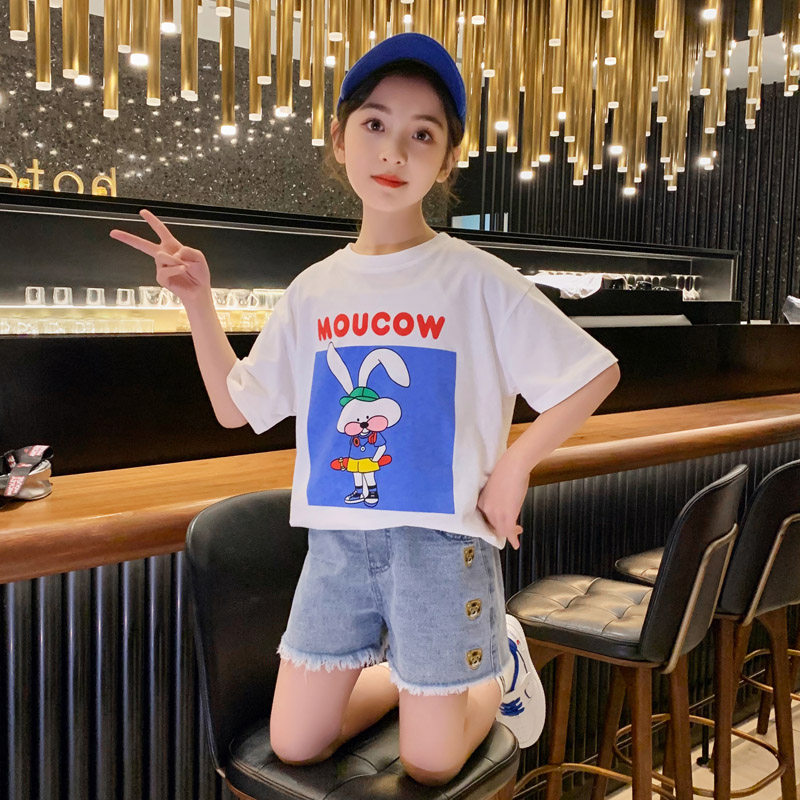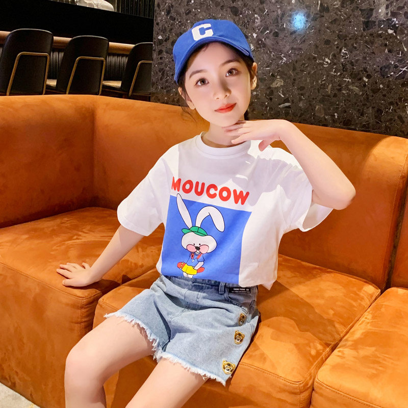 Girl Short Sleeve T-shirt Pure Cotton Summer 2022 New Loose Foreign Palate Dress Half Sleeve Child Summer Dress Blouse Tide