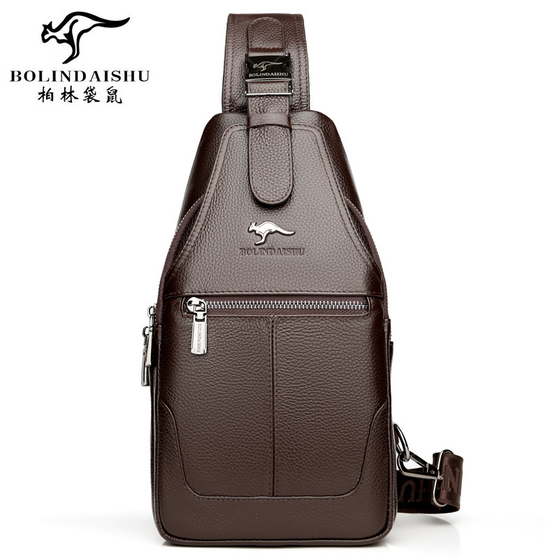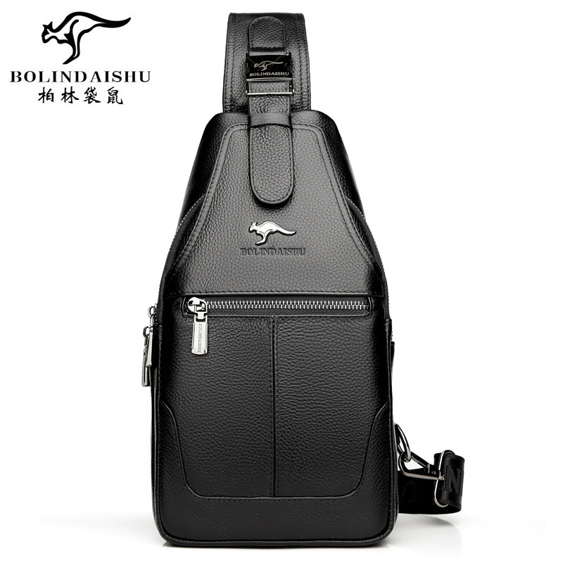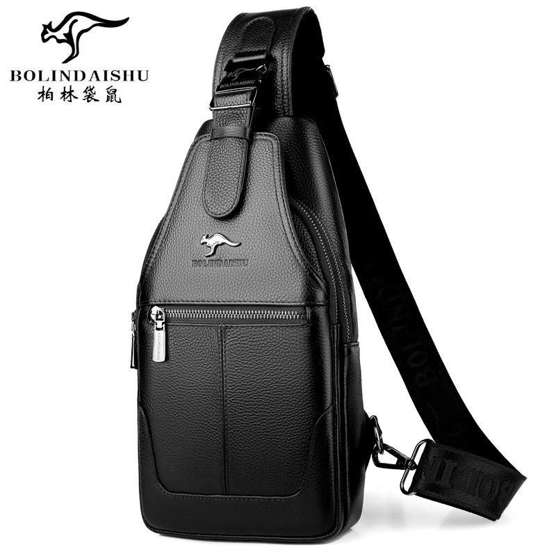 Berlin kangaroo leather chest bag men's casual men's Messenger bag cowhide shoulder bag men's Korean style trendy chest backpack men - Taobao