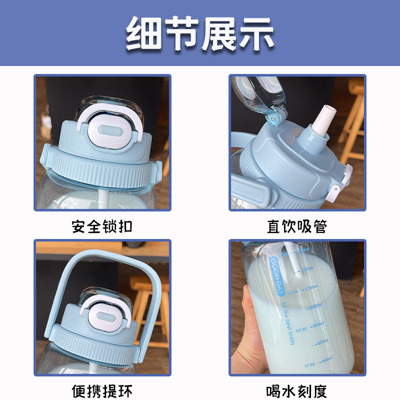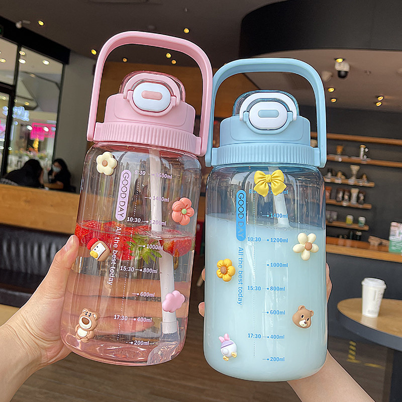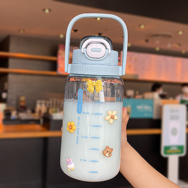 Student Large Capacity Water Glass Female High Face Value Sports Straw Cup Portable Kettle Braces Scale Plastic Cups Ins Wind
