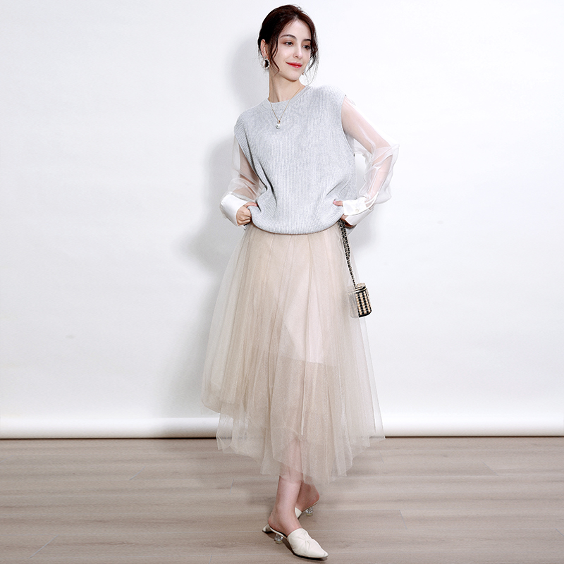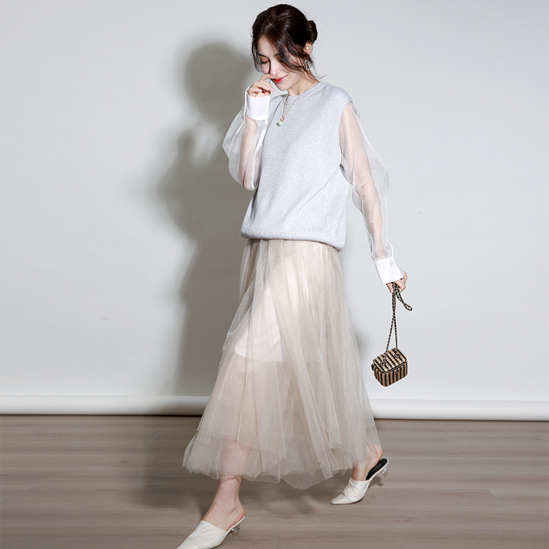 NZ Herbenwind High waist fog surface mesh yarn Skirt Hem Fairy dress Feminine Dress Woman style naked color long skirt half body dress 2022