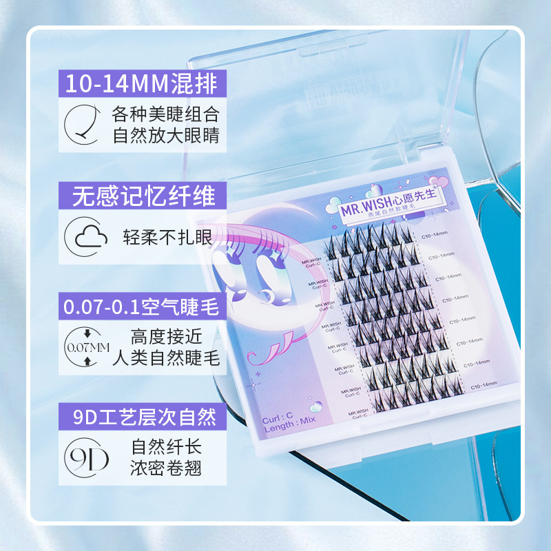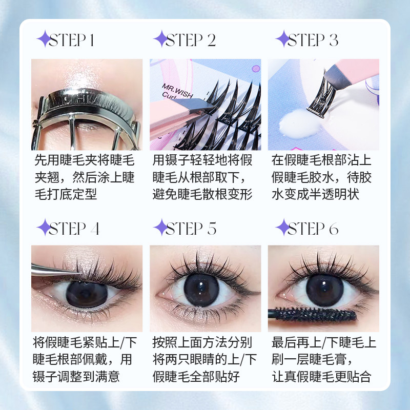 (Exclusive to the anchor) Mr. Wish's swallowtail style segmented single-cluster false eyelashes are naturally thick and charming with self-grafting