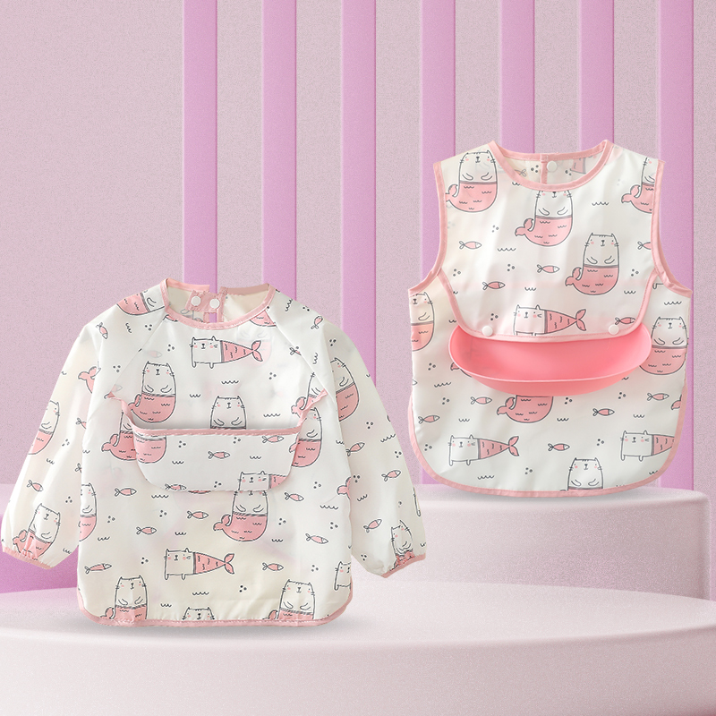 Baby Eating Surrounding Hood Hood Waterproof Anti-Dirty Baby Anti-Wearing Hood Outside Wearing Children Long Sleeves Eating Surrounding Pocket Clothing Spring Summer