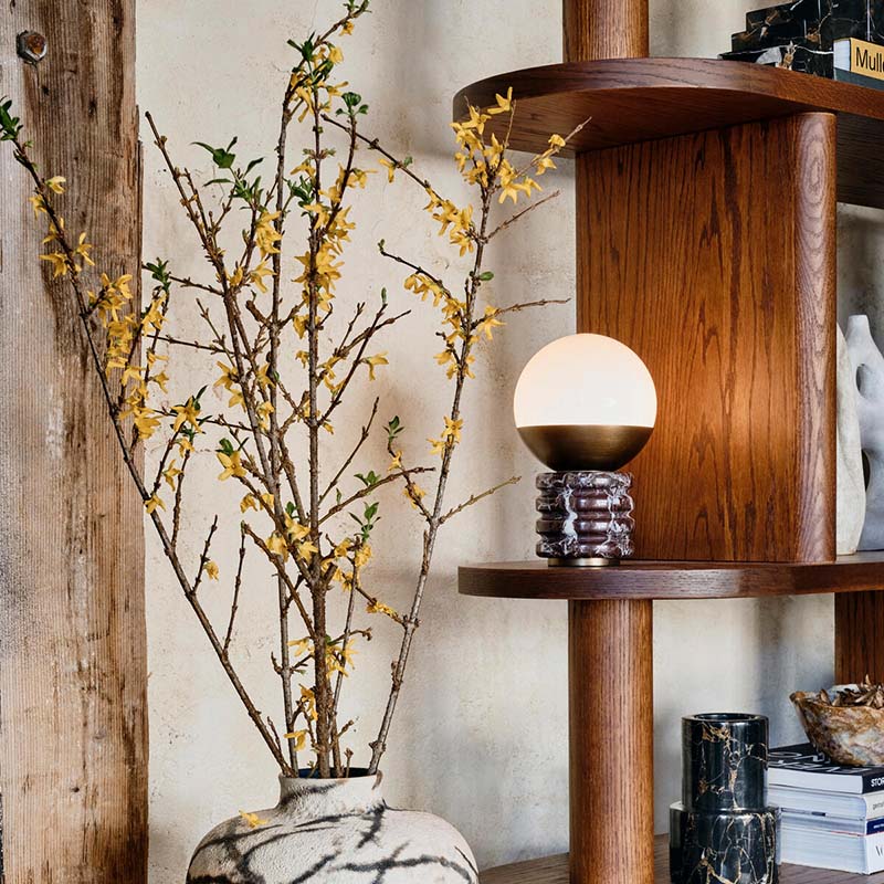 Designer Sylvia retro table lamp decent board room bedroom book room glass round brass marble decorative lamp-Taobao