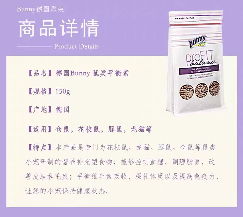 German Bunny nutrient balance element promotes strong hair and physique hamster flower branch mouse 150g 23 years in July