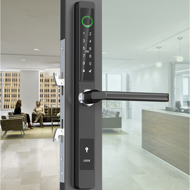 Waterproof broken bridge aluminum fingerprint lock narrow side door frame anti-theft door password lock aluminum alloy round handle smart magnetic card lock
