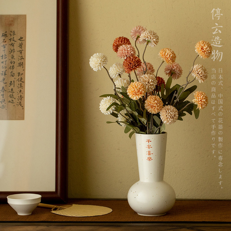 Peace and Joy Retro Ceramic Vase Chinese Style Japanese Advanced Flower Arrangement Flower Living Room Decoration Wedding Gift Decoration