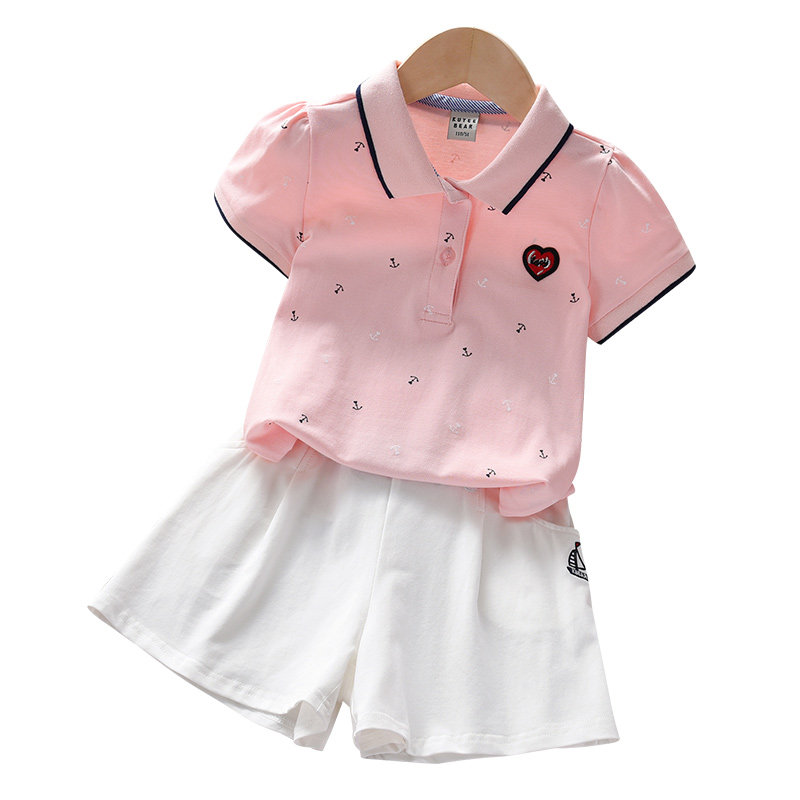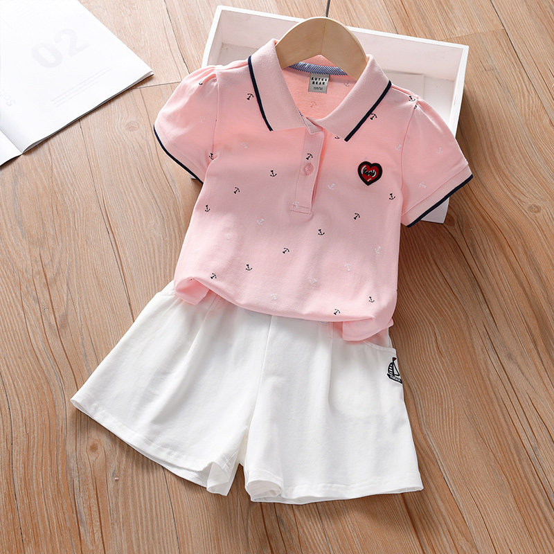 Girls College Wind suit Leisure sports Summer new female baby polo short sleeve shorts Two sets 100 hitch