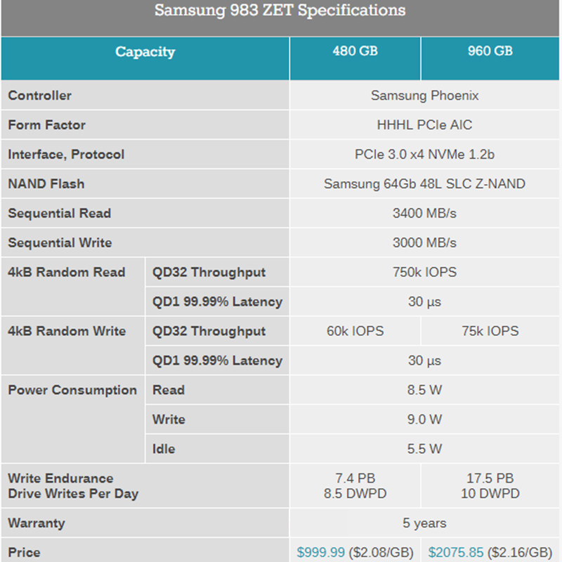 Samsung Samsung 983ZET 480G 960G SLC PCIE NVME Enterprise SSD