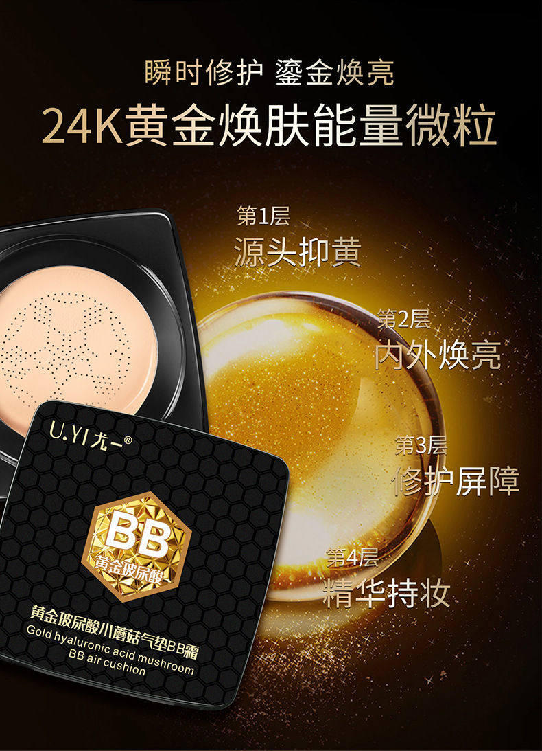 Uyi Youyi gold hyaluronic acid small mushroom head air cushion BB cream moisturizing concealer does not take off makeup waterproof excellent one moisturizing