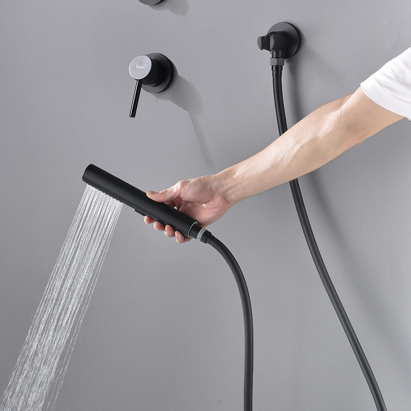 German concealed hot melt into the wall type hot and cold shower hidden embedded all copper water tap three-function shower black