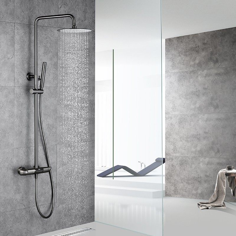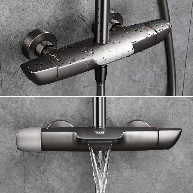 German GDOU Valley Duo Bathroom 83089Q Gun Grey Full Copper Thermostatic Shower Faucet Large Shower Suit Light Extravagant