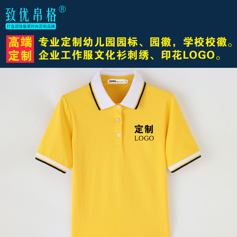 Summer work clothes kindergarten teacher garden clothes kindergarten teacher early education center yellow short-sleeved polo shirt T-shirt women's custom