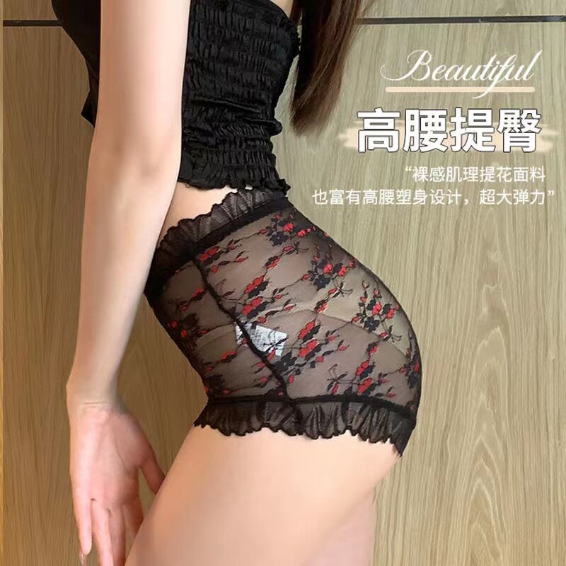 High-waist lace No-scratched underwear Silk Antibiotic-resistant to Hip Sexy Mesh Upscale Breathable Thin Lady Triangle Pants