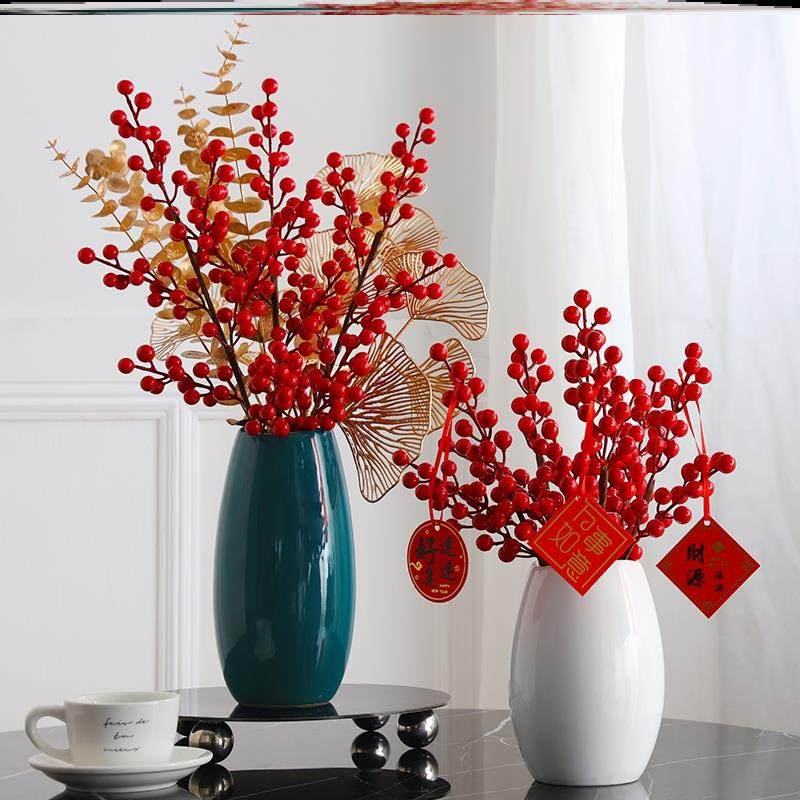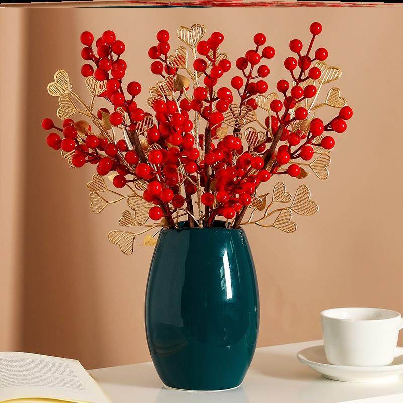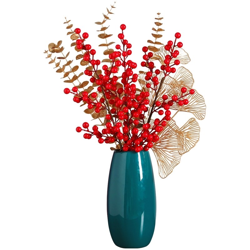 4 6 fork red fruits gingko leaves 1 branch (sending festive green small number vase 6 branches red fruits 1 gold green large number vase 3 branches red fruits 1 gold leaf white small number vase 6 branches of red fruit