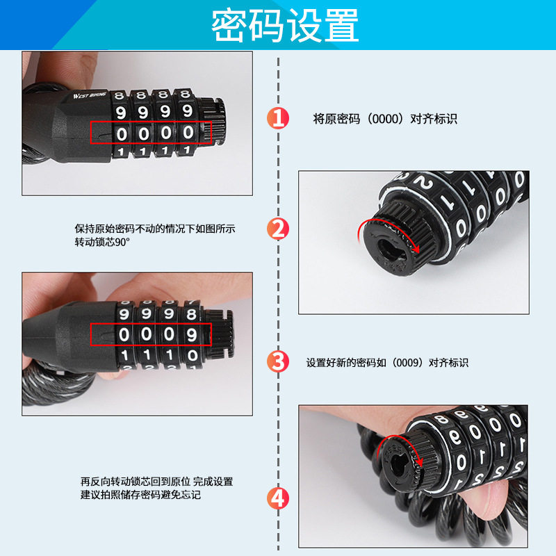 Motorcycle helmet lock 4-digit combination lock wire lock electric bicycle bicycle portable chain anti-theft lock wire cable lock
