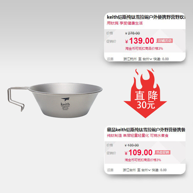 Collection keith Keith pure titanium snow bowl outdoor camping portable tableware snow bowl multi-functional picnic titanium bowl