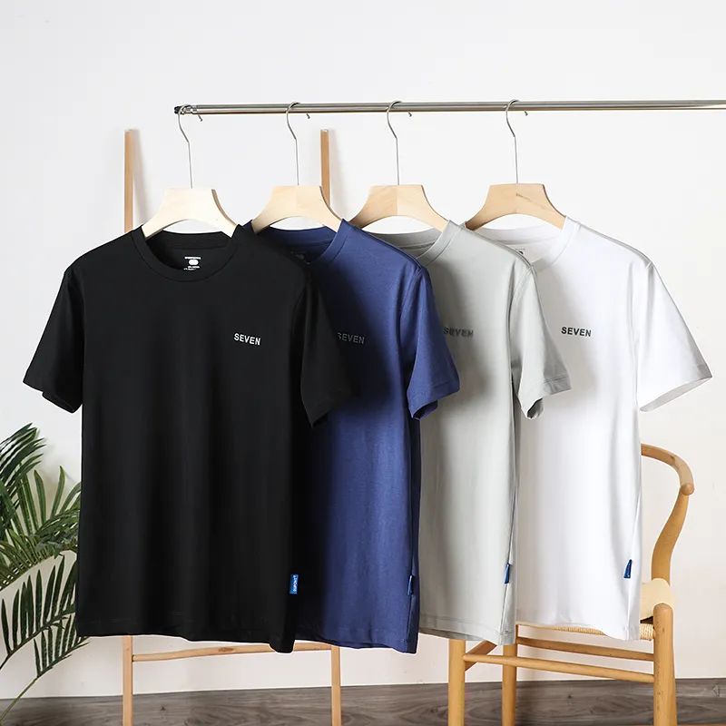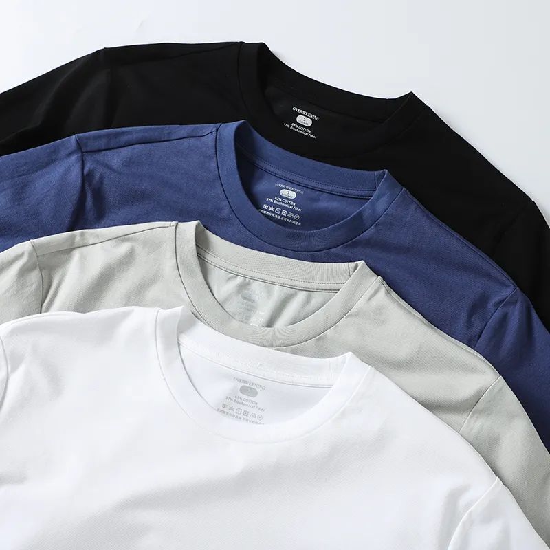 Self-leaving 10 pieces DuPont tech long suede cotton summer pure color minimalist 100 hitch round collar short sleeve boomer T-shirt male