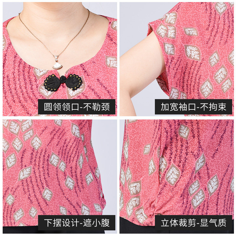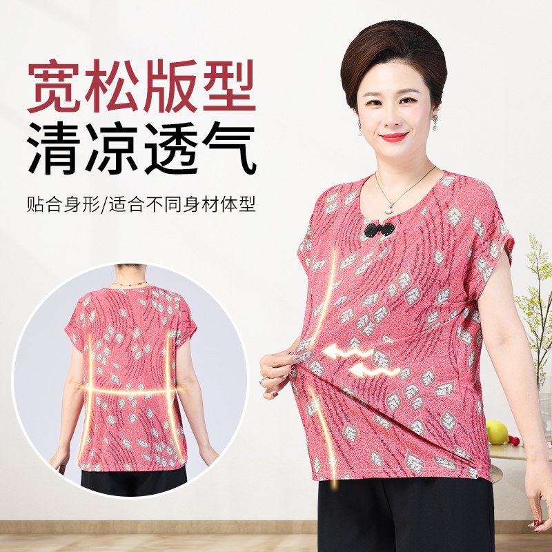 Mommy summer dress T-shirt middle old ice wire big thin shirt middle-aged grandmother half-sleeve collar