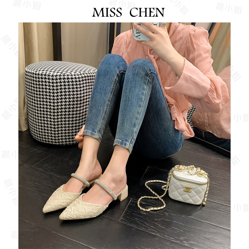 Miss Morning ) In the summer of 2022, soft wind with tip head, empty heel wearing slippers