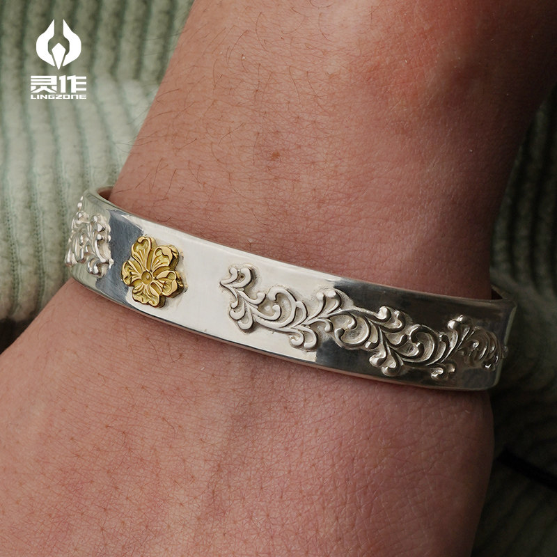 A rose silver bracelet 999 silver 18 K gold relief tailored bracelet personality