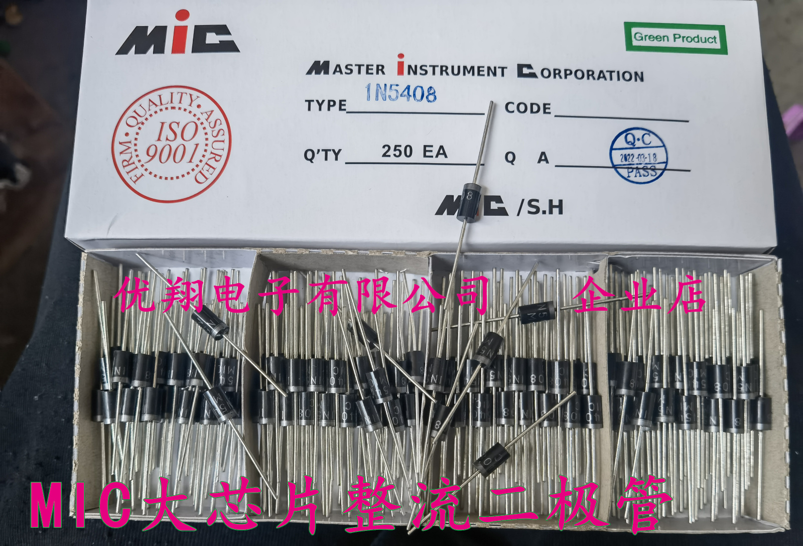 MIC rectifier diode 1N5408 IN5408 3A 1000V copper pins (250 pcs box) 0 084 pieces
