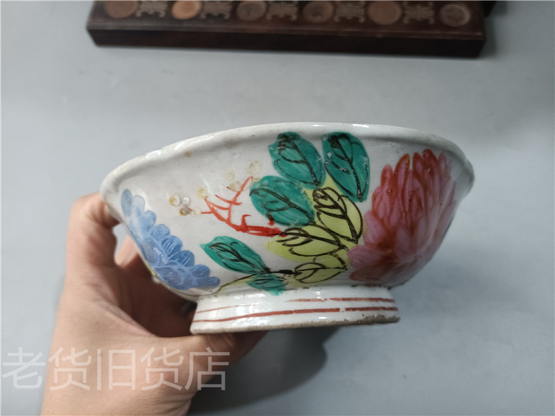 Ancient Play Antique Bag Old Bag Genuine Open Door Old Republic Period Pink Peony Flowers Octagonal Sunflower Mouth Large Bowl Collection Treasures